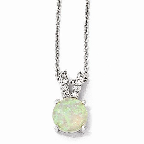 Sterling Silver Synthetic Opal Cabochon & CZ Necklace