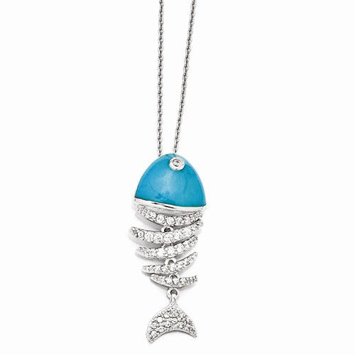 Sterling Silver Turquoise Enameled CZ Fish Necklace