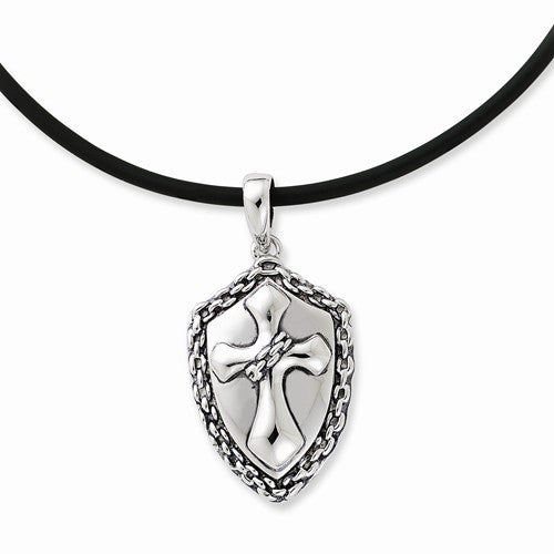 Sterling Silver Vessel Of Honor Rubber Cord Necklace