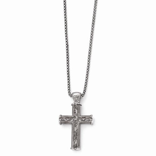 Titanium Casted Satin & Polished Cross Pendant On Necklace