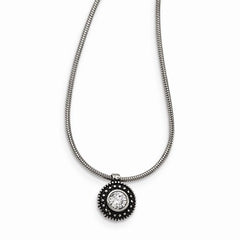 Metal: Stainless SteelChain Length:18 inChain Width:1 mmGemstones: Cubic Zirconia (CZ)Polished, Antiqued FinishFree U.S. Shipping for orders over $99 Protected by our 30-Day Risk Free Returns!