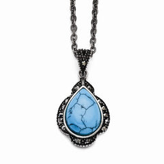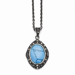 Metal: Stainless SteelChain Length:18 inChain Width:2 mmGemstones: Turquoise (Simulated), MarcasiteAntiqued FinishFree U.S. Shipping for orders over $99 Protected by our 30-Day Risk Free Returns!
