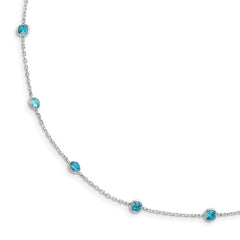 Metal: Sterling Silver Chain Length:18 in Chain Width:1 mm Clasp: Spring Ring Gemstones: Cubic Zirconia (Blue CZ) Finish: Polished Free U.S. Shipping for orders over $50 Protected by our 30-Day Risk Free Returns!