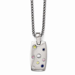 Metal: Titanium/Silver Two-ToneChain Length:15 inChain Width:27 mmGemstones: Sapphire (Colors)Gem Weight: 0.45 CTFinish: Polished Free U.S. Shipping for orders over $99 Protected by our 30-Day Risk Free Returns!