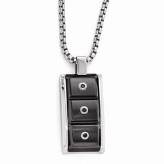 Metal: Titanium/Silver Two-ToneChain Length:20 inChain Width:3 mmGemstones: Black SpinelGem Weight: 0.21 CTFinish: Polished Free U.S. Shipping for orders over $99 Protected by our 30-Day Risk Free Returns!