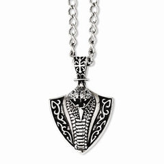 Stainless Steel Antiqued Snake On Shield Necklace, 5 mm