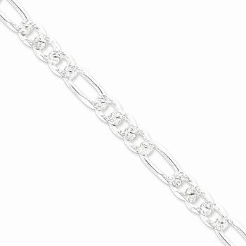 Sterling Silver Pave Flat Figaro Chain, 9.5mm