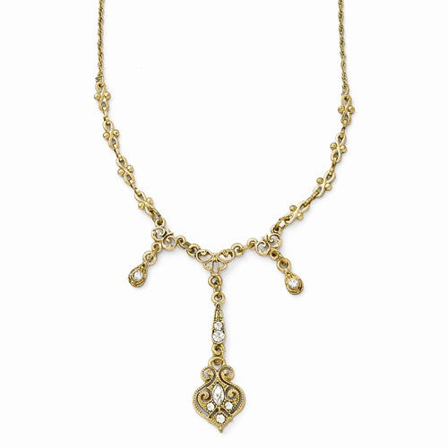Gold-Tone Clear Glass Ext Triple Drop Necklace