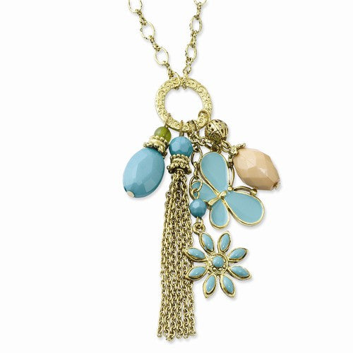 Gold-tone Teal and Cream Acrylic Beads w/ Charm
