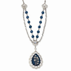 Silver-tone Blue Glass Bead Crystal & Enamel Necklace