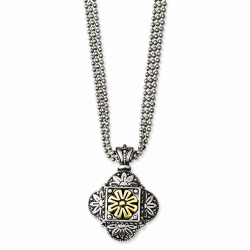 Silver-tone & Brass Flower Accent Pendant Necklace
