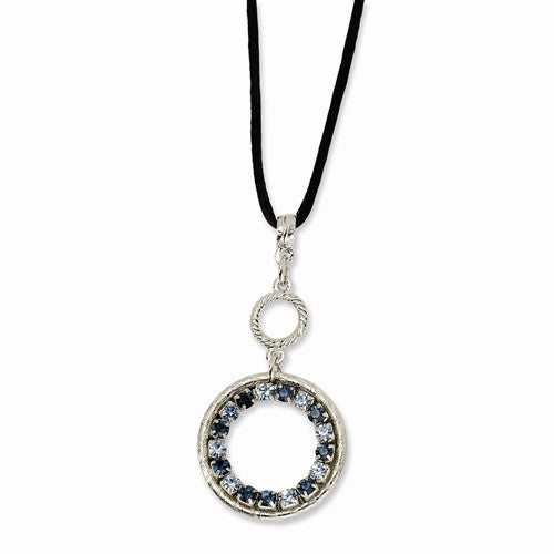 Silver-tone Lt/Dk Blue Crystal Circle on 16 inch w/ext Satin Cord, Jewelry Necklace