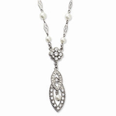 Silver-tone Simulated Pearl & Crystal Necklace