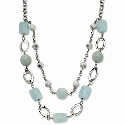 Stainless Steel Green Agate & Howlite Necklace