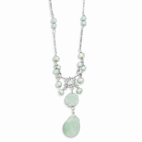Sterling Silver Amazonite, Green Freshwater Cultured Pearl Necklace