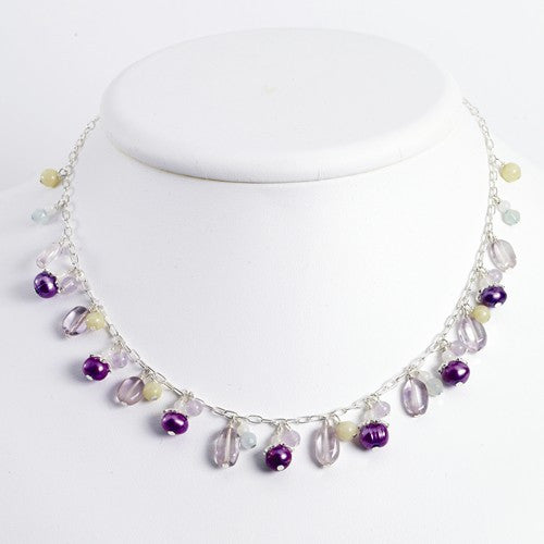 Sterling Silver Amethyst, Aventurine, Green, Quartz Necklace