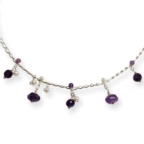 Sterling Silver Amethyst, Cultured Pearl Dangle Necklace