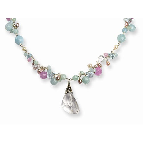 Sterling Silver Blue Crystal, Amazonite, Lavender Quartz, Cult Pearl Necklace