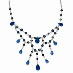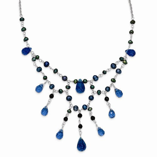 Sterling Silver Blue Goldstone, Blue Crystal, FW Cultured Pearl Necklace
