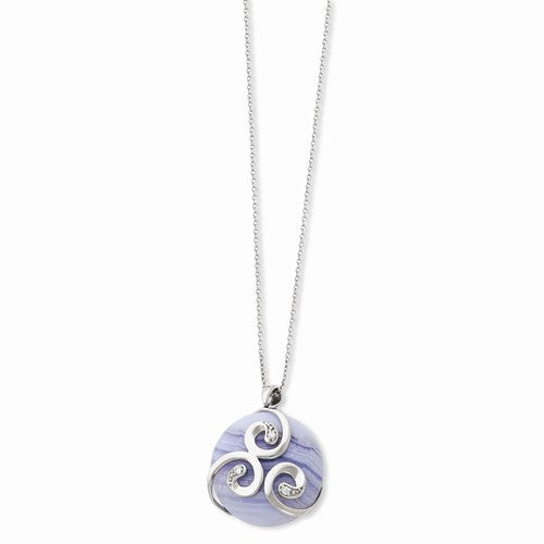 Sterling Silver Blue Lace Agate & CZ River Of Hope Necklace