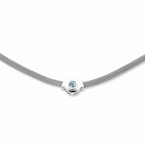 Sterling Silver Blue Topaz & Mesh Fancy Necklace