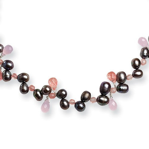 Sterling Silver Cherry, Rose Quartz & Grey Cultured Pearl Necklace