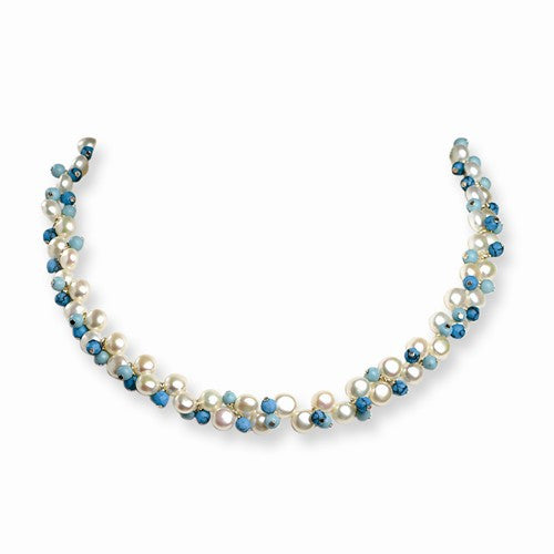 Sterling Silver Cultured Button Pearl, Dyed Howlite, Turquoise Necklace