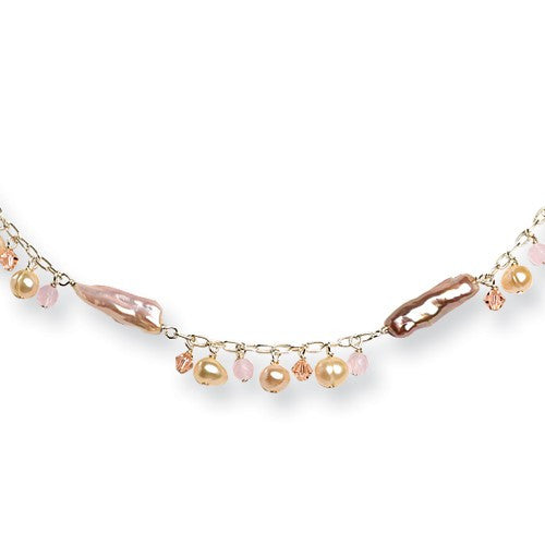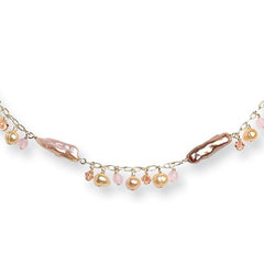 Sterling Silver Cultured Pearls, Rose Quartz & Peach Crystal Necklace