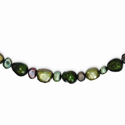 Sterling Silver Dk Green, Dk Purple, Olivine FW Cultured Pearl Necklace