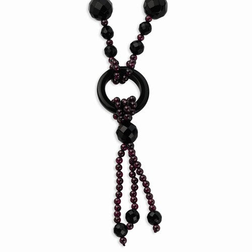 Sterling Silver Faceted-Black Agate & Rh Garnet Bead Necklace