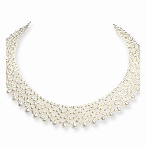 Sterling Silver Freshwater Cultured White Pearl Bib Necklace