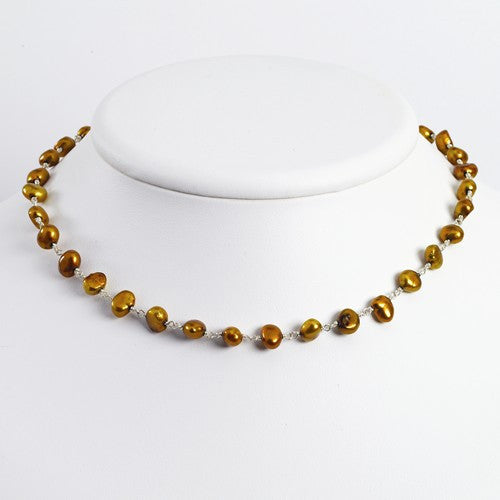 Sterling Silver Golden Brown FW Cultured Pearl Necklace