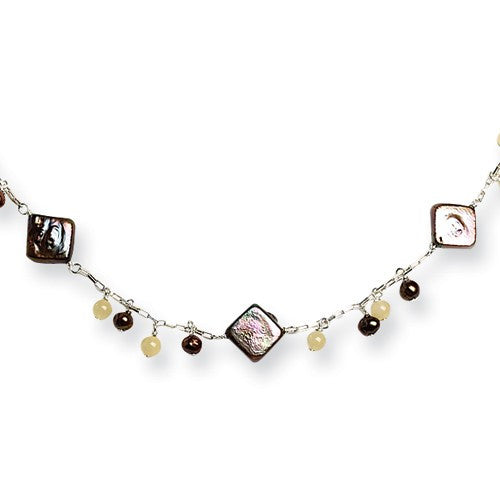 Sterling Silver Golden Cultured Pearl, Mother Of Pearl, Yellow Necklace