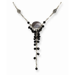 Sterling Silver Lace Agate & Black Crystal Necklace