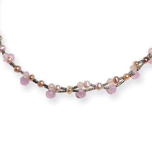 Sterling Silver Rose Quartz & Cultured Peach Pearl Necklace
