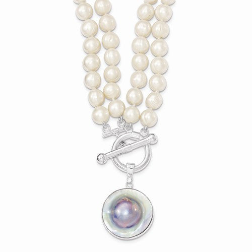 Sterling Silver Strandfreshwater Cultured Pearl, Pearl Disc Necklace