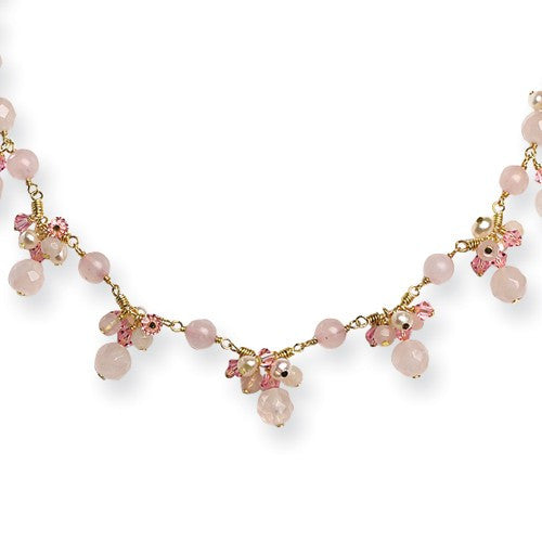 Sterling Silver & Vermeil Rose Quartz, Pink Crystal, Cultured Pearl Necklace