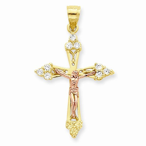 10k Gold Two-tone CZ Crucifix pendant
