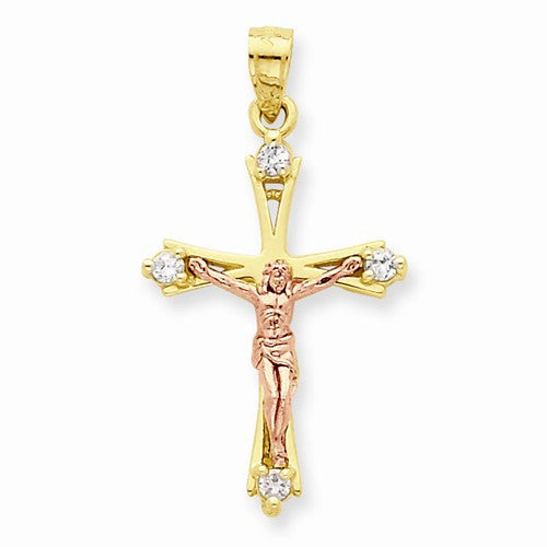 10k Gold Two-tone CZ Crucifix pendant, Lovely Pendants for Necklace