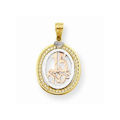 10k Gold Two-tone Sweet 15 Oval pendant, Exquisite Pendants for Necklace