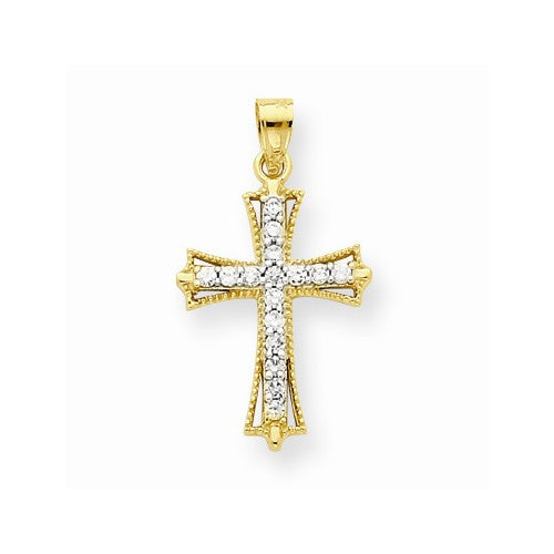 10k Yellow Gold CZ Filigree Cross Pendant, Adorable Pendants for Necklace