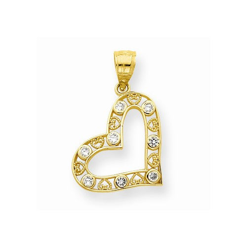 10k Yellow Gold CZ Filigree Heart Pendant, Pendants for Necklace