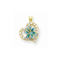 10k Yellow Gold Enamel Flower & CZ Heart Pendant