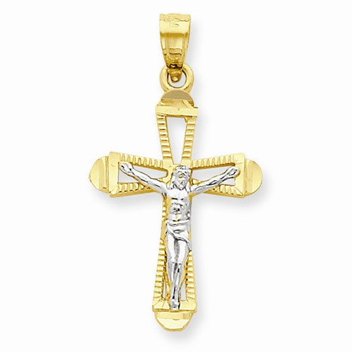 10k Yellow Gold & Rhodium Crucifix Pendant