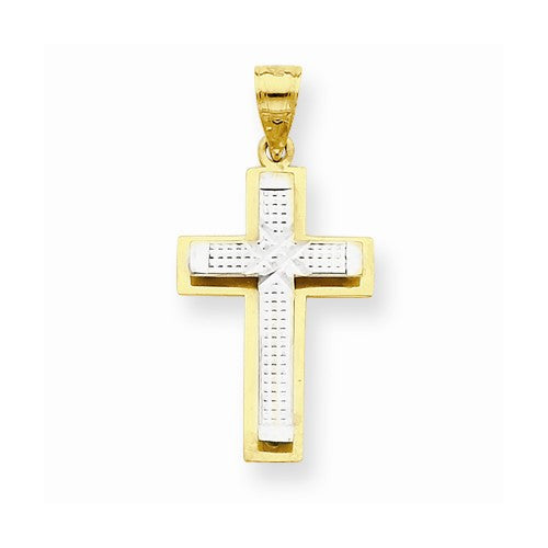 10k Yellow Gold & Rhodium Diamond-Cut Cross pendant