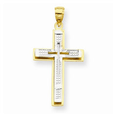 10k Yellow Gold & Rhodium Diamond-Cut Cross pendant, Fine Pendants for Necklace
