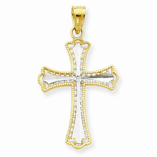 10k Yellow Gold & Rhodium Diamond-Cut Cross Pendant, Gorgeous Pendants for Necklace