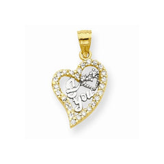 10k Yellow Gold & Rhodium I Love You CZ Heart pendant