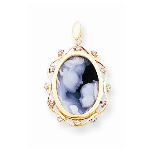 14k Gold .12ct Diamond 13x18 Agate Cameo with Sentiment pendant