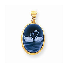 14k Gold 13x18 2 Swans Agate Cameo Pendant